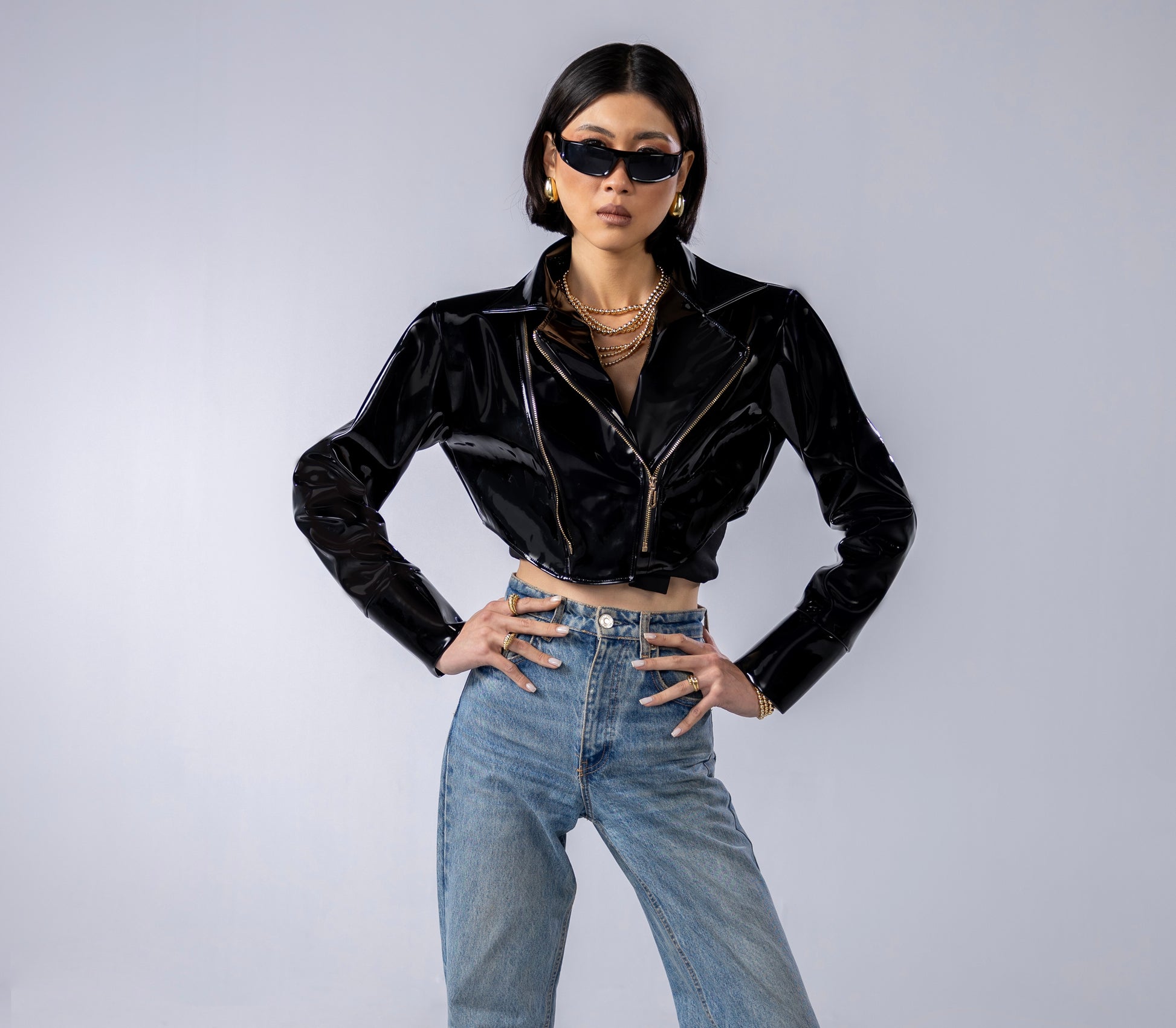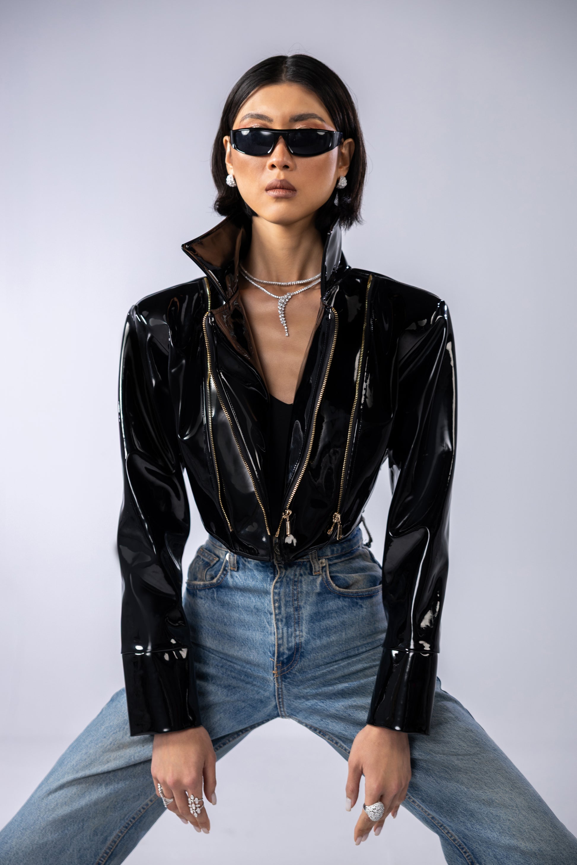 Black Shoulder padded Verne with gold zippers jacket