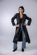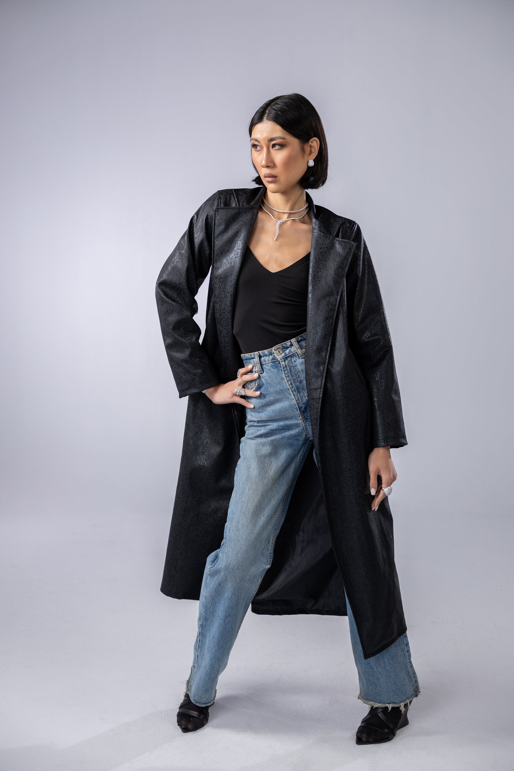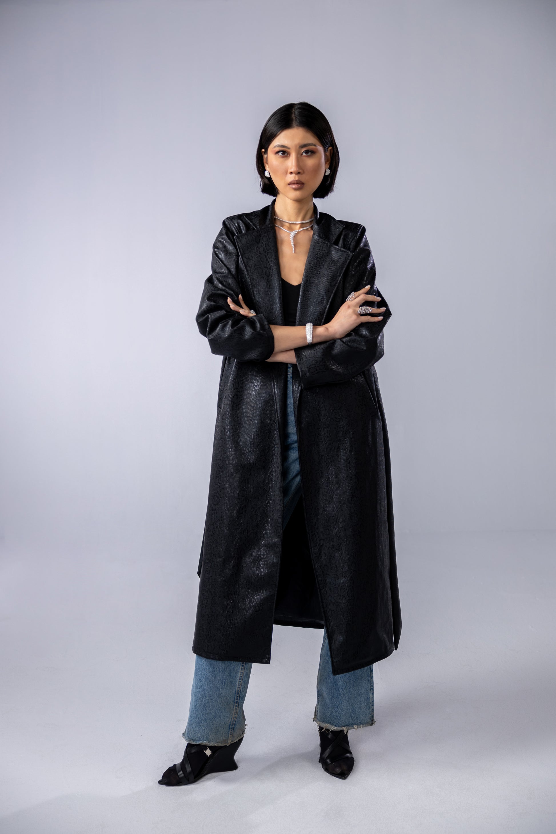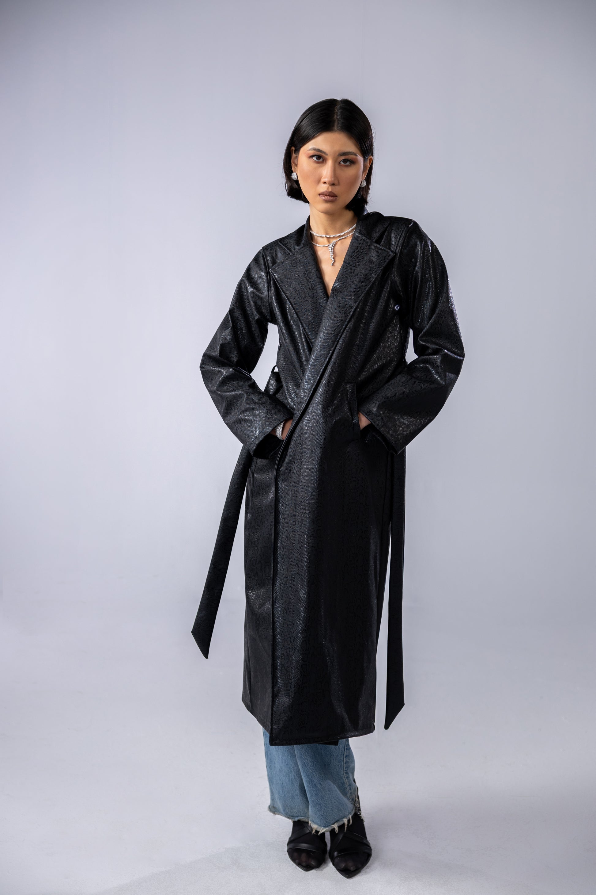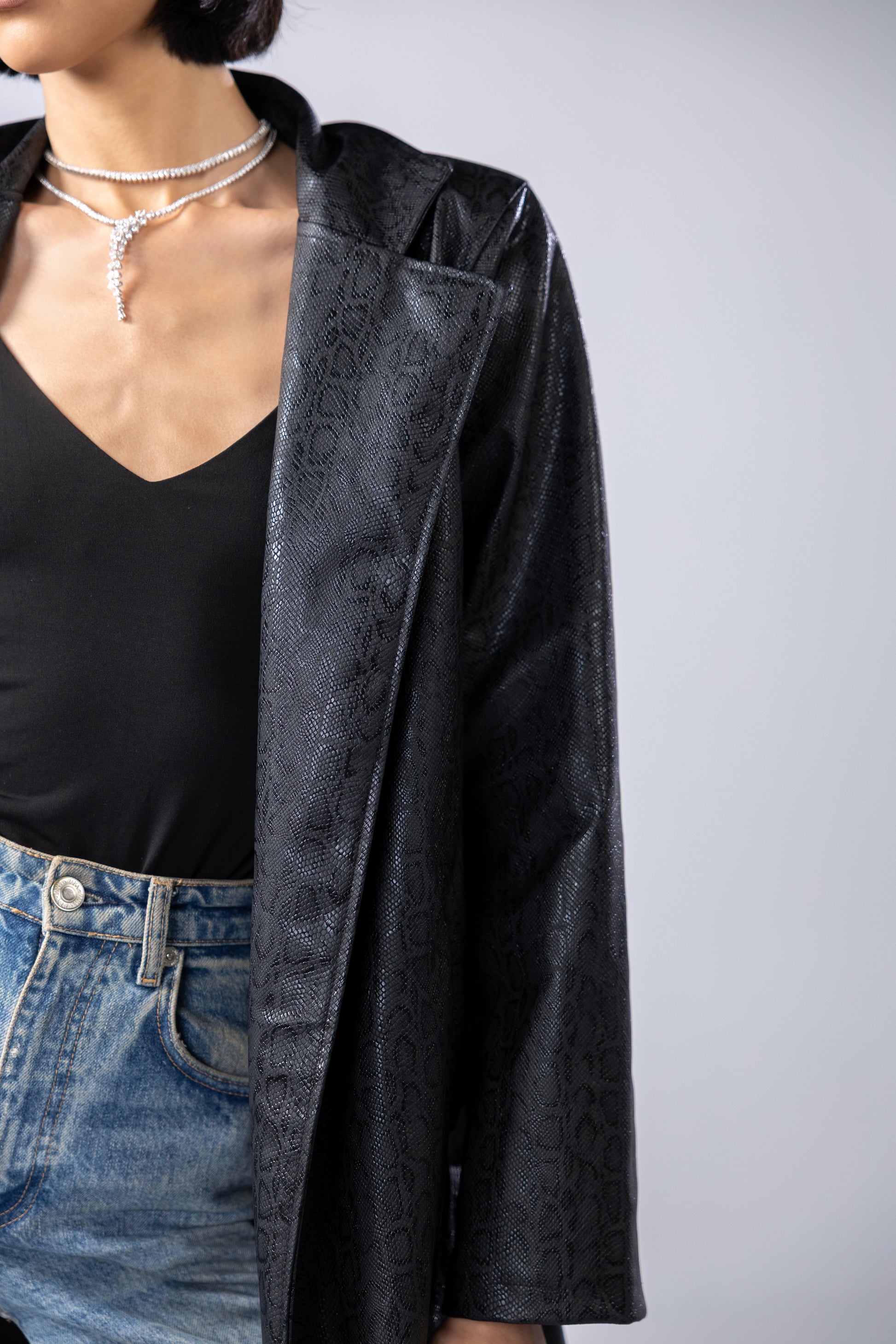 Snake black printed leather coat